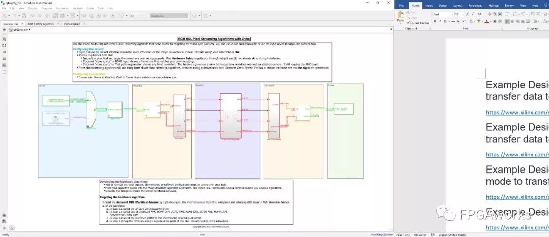 Meanwhile, several new windows will pop up: Vision Zynq Targeted Hardware Interface Model and Vision Zynq Targeted Software Interface Model.